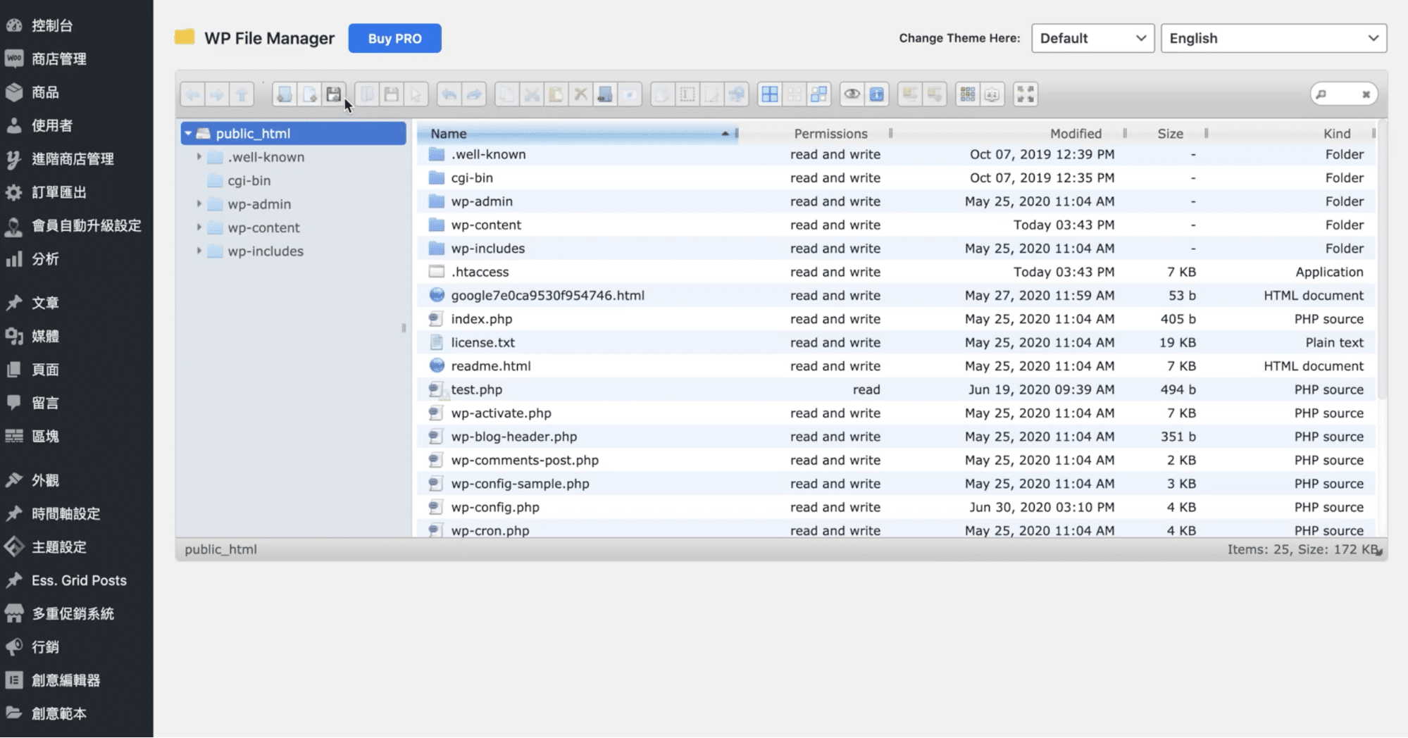 步驟1:從Wrodpress的【外掛】>【安裝外掛】頁面中,搜尋File Manager外掛,完成安裝後啟用。