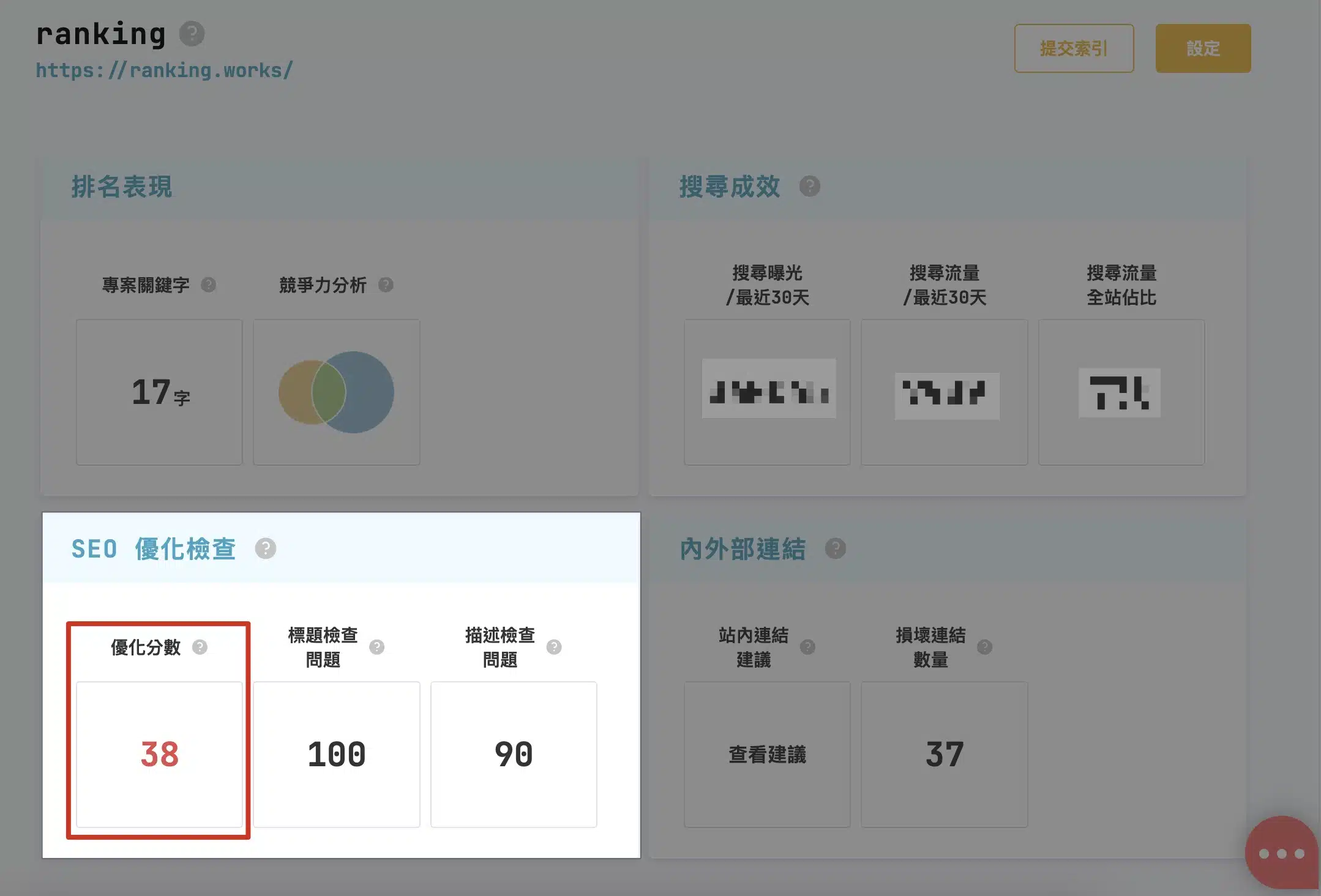 在此欄位中可以看到評測分數,並能夠一目瞭然需要改善&檢查通過的項目數量