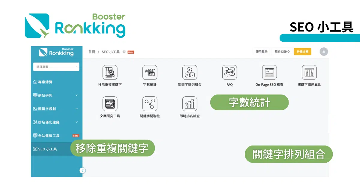 如果能夠活用「SEO 小工具」,便能夠幫助我們加速 SEO 的操作流程!了解更多實作應用請看:Rankking工具教學操作知識庫